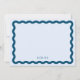 Send out a hello, thank you, sorry... with these stylish retro style personalised note cards with a wavy scallop frame in navy with a baby blue background. Personalise with your name in navy font.