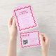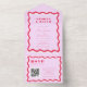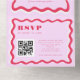 Retro Wavy Frame Pink and Red QR Code 70s Wedding All In One Invitation