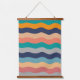 Retro Wavy Lines - Blue Turquoise Orange Hanging Tapestry