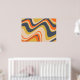 Retro Wavy Lines - Orange, Navy, Yellow, Beige Poster