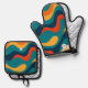 Retro Wavy Pattern Modern Abstract Oven Mitt & Pot Holder Set