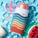Retro Wavy Stripes Pattern with Your Monogram Seltzer Can Cooler
