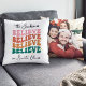 Create lasting memories by adding one of your favourite family photos to this "We Believe in Santa Claus" retro colours festive pillow.