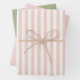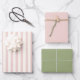 Retro wedding Green Pink Striped Wrapping Paper Sheet