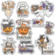 The Western Halloween Stickers pack has 9 stickers and includes art themes: Let's Go Ghouls, Howdy Pumpkins, Let's Go Ghouls, spooky squad, and Black Cat.
