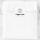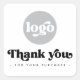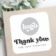 Square business thank you stickers featuring the text "Thank you" in a retro style font and customisable text "for your purchase". Blackn (or custom colour) text on a white background. Upload your logo. You can change colours, move and resize elements with the design tool.