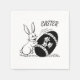 A black and white image of a white bunny rolling a huge decorated Easter Egg. Image from a 1940’s Vintage Printers Book (with no copyright).