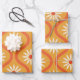 Retro White Flowers on Mid Century Orange Ogee Wrapping Paper Sheet