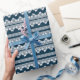 Retro white lace with butterflies on a dark blue b wrapping paper