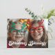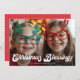 Retro White Script Christmas Blessings One Photo Holiday Card