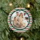 Retro White Stripes Family Photo Merry Christmas Ceramic Tree Decoration