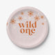 Wild One! Retro inspired first birthday party plates with 70's style daisies and boho fonts and colours.