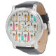 This watch is adorable. It has a great graphic pattern of wine bottles and wine glasses. The watch has an extra big face with a nice band. Very hip. The item arrived right on time. Very happy with purchase. I would not hesitate to order a watch from zazzle. The design was very clear and clean. Great colors. Looked just like expected. Very happy with design quality.