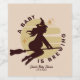 Halloween Baby is Brewing Baby Shower Pregnant Witch on Broom Stick Wine Tags