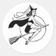 A fun, retro witch on a broomstick, flying in front of the full moon. A cute and quirky finishing touch or fun little extra gift for the witch in your life.