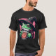 I give wanted to give this a 4 instead of a 5 because these Basic DARK T0shirts run unexpectedly SLIM or Narrow. Which is great if you do not have a potbelly, but I have a paunch. It isn't the shirt's fault that I've got a beer belly. The design and shirt itself is a quality cotton shirt. The color is more of a deep purple, but still a very pretty color. The Basic DARK T-shirts run a bit SLIMMER than the Basic Ts. The neck is a fraction narrower (or seems to be narrower) also. I'm a paunchy middle-aged woman and my neck is 12 inches (31cm) thick and the neckline fell about the same as in the photo of the man, and I had the desire to tug it a bit. So if you're a thick necked man or like loose shirts, be aware these are slimmer shirts. Once I get rid of my lockdown paunch it'll look great. The shirt washed well in cold water with no apparent bleeding. We don't have a dryer, so it hung dry. Did not shrink. Love the colors and the design. The design looks smaller on my shirt than it does on the model on-line. But still, it looks good on the shirt. The printing looks as it does on the model, just the size seems fractionally smaller. Washed garment in cold water, hung dry and design appeared unaffected.