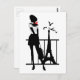 Retro woman red black silhouette with Eiffel Tower Postcard