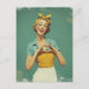 A cheerful, vintage-inspired woman forms a heart with her hands, radiating warmth and positivity. Her bright yellow top, matching headscarf, and classic retro styling pop against the textured teal background. With a joyful smile and nostalgic charm, the artwork captures a timeless expression of affection and upbeat energy.