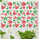 Christmas boomerangs kitchen towel. Background colour can be customised.