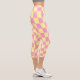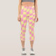 Retro Y2K Chequerboard Capri Leggings , Funky Trendy pink & yellow Chequerboard Leggings