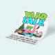 Bright blue and green retro yard sale flyer with Flamingo Pool float