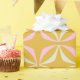 Bright and colourful wrapping paper with a pink and yellow mid century mod geometric pattern.