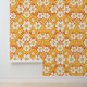 Retro Yellow Orange Flower Daisies Floral Pattern Wallpaper