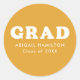 Custom graduation stickers featuring "Grad" in bold white retro lettering with a yellow-orange background (editable colour). Personalise the yellow-orange graduation stickers by adding the graduate's name and graduation year. The personalised graduation stickers are perfect to use for sealing envelopes, graduation favour bags, etc.