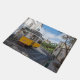 Retro yellow tram on street in Lisbon, Portugal Doormat
