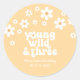 Retro Young Wild three Daisy floral 3rd birthday Classic Round Sticker
