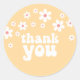 Yellow Young Wild and Three! Retro inspired 3rd birthday party thank you favour stickers with 70's style daisies and boho fonts and colours.