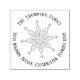 Add a touch of elegance to your holiday mail with these festive Christmas return address stamp. Perfect for showcasing your family name, these customisable labels feature a stylish round circle text layout with minimalist, whimsical winter snowflake accents. Designed with a rustic charm, they blend simple typography and an eye-catching mail stamp style, ideal for sending warm holiday greetings. Personalise yours today to add a unique, elegant touch to your seasonal correspondence!