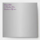 This silver and purple damask envelope matches the wedding invitation shown below and is designed for you to use with your outgoing 5" square invitation intead of the plain white envelopes that come with the invitation. Customise it to have your own return address on it. If you require any changes, please email your request to niteowlstudio@gmail.com.
