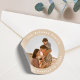 A simple photo return address round sticker template in earthy neutral tones, which you can easily update with your name address and custom photo!