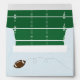 This design features a return address envelope with white and green, fun, and whimsical, with a football, field, with a sports, athlete, team theme.