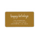 A simple and stylish “Happy Holidays” return address label featuring modern minimalist handwritten script typography on an elegant gold background. Perfect for adding a touch of chic sophistication to your Christmas cards and festive mail, this design blends classic holiday warmth with a clean, contemporary feel. Personalise it easily with your family name and address for a unique and polished finishing detail. Ideal for pairing with our matching holiday card range in the same elegant gold design, this return address label brings cohesion and charm to your seasonal stationery. A lovely way to make your envelopes feel thoughtful, festive, and beautifully coordinated this holiday season.