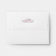 Classic white envelope with a three line, centered hunter burgundy address on the back flap.