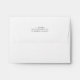 Classic white envelope with a three line, centered dark gray return address on the back flap.