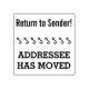 "Return to Sender!", "ADDRESSEE HAS MOVED" Rubber Stamp
