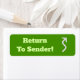 This label design features the message "Return To Sender!", along with a decorative arrow shape. It could be used to indicate that received letter mail may have been wrongly addressed, and should be returned to the sender. [~Z0000168]