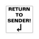 This basic rubber stamp design features the message "RETURN TO SENDER!", along with an arrow symbol. It could be used to indicate that received postal mail has been delivered to the wrong address or that the recipient is unknown, and should be returned to the sender.