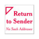 This rubber stamp design features the messages "Return to Sender" and "No Such Addressee", along with a decorative arrow shape. It could be used to indicate that received mail has been delivered to the wrong address or to an unknown recipient, and should be returned to the sender.