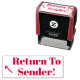 This simple rubber stamp design features the message "Return To Sender!", along with an arrow symbol. It could be used to indicate that received mail may have been wrongly addressed, and should be returned to the sender.