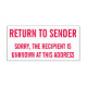 "RETURN TO SENDER" Unknown Recipient Rubber Stamp
