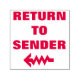 This rubber stamp design features the message "RETURN TO SENDER" along with a wavy arrow. It could be used on letter mail that has been delivered but for which the recipient is unknown.