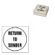 This rubber stamp design features the message "RETURN TO SENDER" within a circle outline.