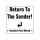 This rubber stamp design features the messages "Return To The Sender!" and "⚬ Recipient Has Moved ⚬", along with an arrow symbol. It could be used to indicate that received mail has been delivered to the wrong address or that the recipient is unknown, and should be returned to the sender.
