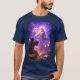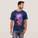I give wanted to give this a 4 instead of a 5 because these Basic DARK T0shirts run unexpectedly SLIM or Narrow. Which is great if you do not have a potbelly, but I have a paunch. It isn't the shirt's fault that I've got a beer belly. The design and shirt itself is a quality cotton shirt. The color is more of a deep purple, but still a very pretty color. The Basic DARK T-shirts run a bit SLIMMER than the Basic Ts. The neck is a fraction narrower (or seems to be narrower) also. I'm a paunchy middle-aged woman and my neck is 12 inches (31cm) thick and the neckline fell about the same as in the photo of the man, and I had the desire to tug it a bit. So if you're a thick necked man or like loose shirts, be aware these are slimmer shirts. Once I get rid of my lockdown paunch it'll look great. The shirt washed well in cold water with no apparent bleeding. We don't have a dryer, so it hung dry. Did not shrink. Love the colors and the design. The design looks smaller on my shirt than it does on the model on-line. But still, it looks good on the shirt. The printing looks as it does on the model, just the size seems fractionally smaller. Washed garment in cold water, hung dry and design appeared unaffected.