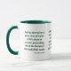 This two-tone mug features a migra extrabold print font with green letters displaying the "Revelation 22:1" KJV bible scripture verse over a white background. This verse is referencing the Book Of Revelation 22nd chapter showing 1st verse in this bible scripture quote theme from the King James bible. The rim & handle are glazed in matching colours available in 11-ounce or 15-ounce sizes microwave and dishwasher safe ceramic construction.
