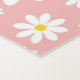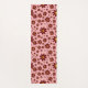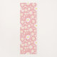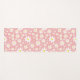 Cute yoga mat with reversible daisy pattern: side 1 is white daisies on pink background, side 2 has maroon daisies on pink background.